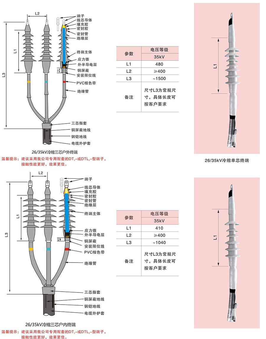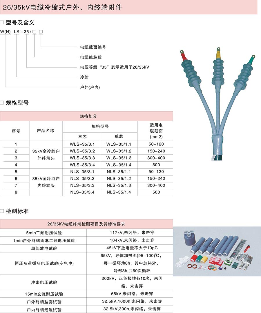 26/35KV電纜冷縮式戶外、內(nèi)終端附件產(chǎn)品詳情: